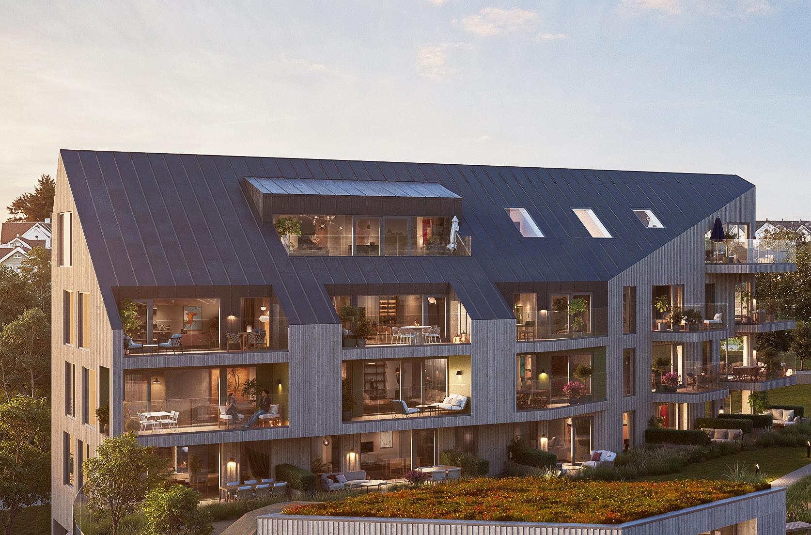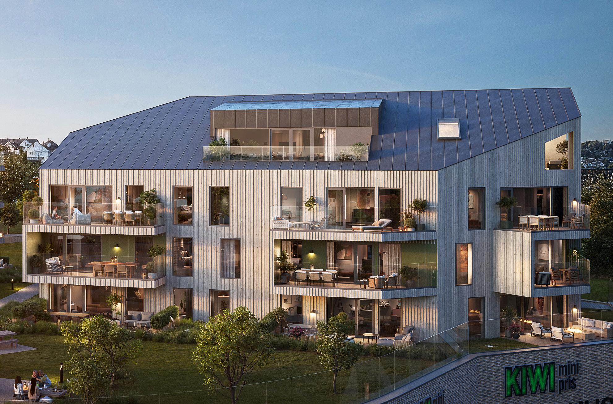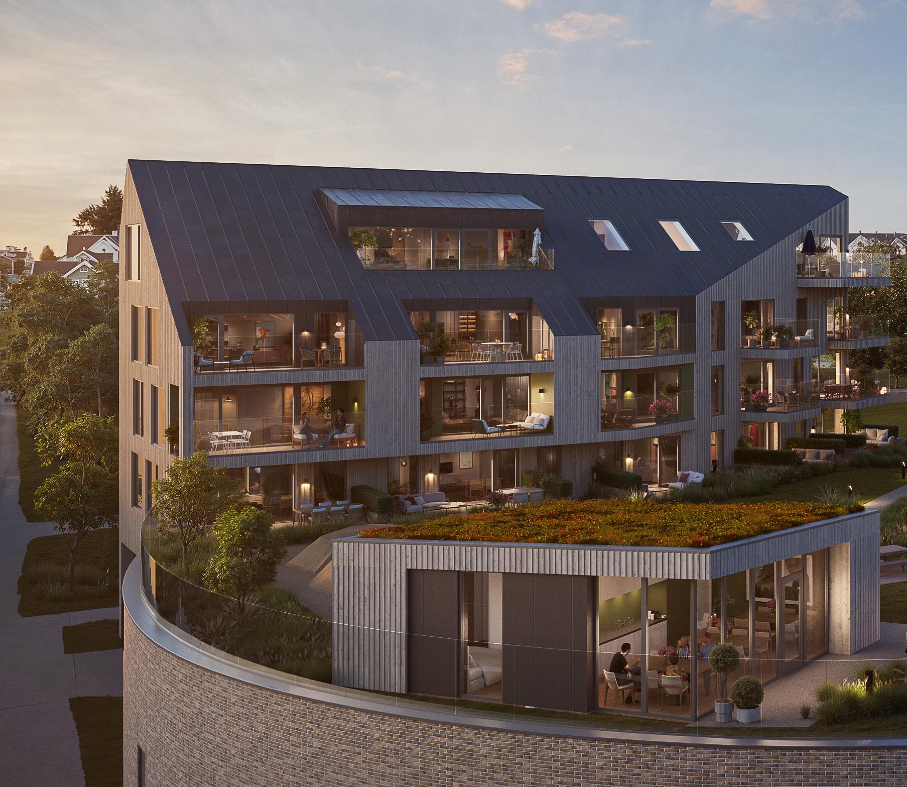 i 3. til 5. etasje gir uforstyrret utsyn. Velger du en drømmeleilighet i 2. etasje med egen markterrasse, kommer du tett på det flotte, beplantede fellesarealet.