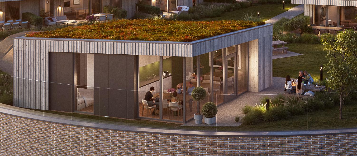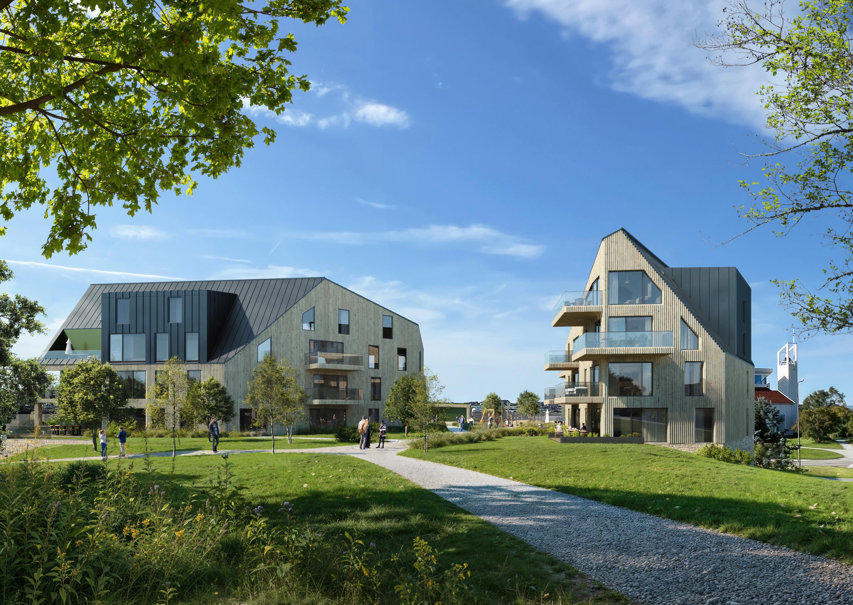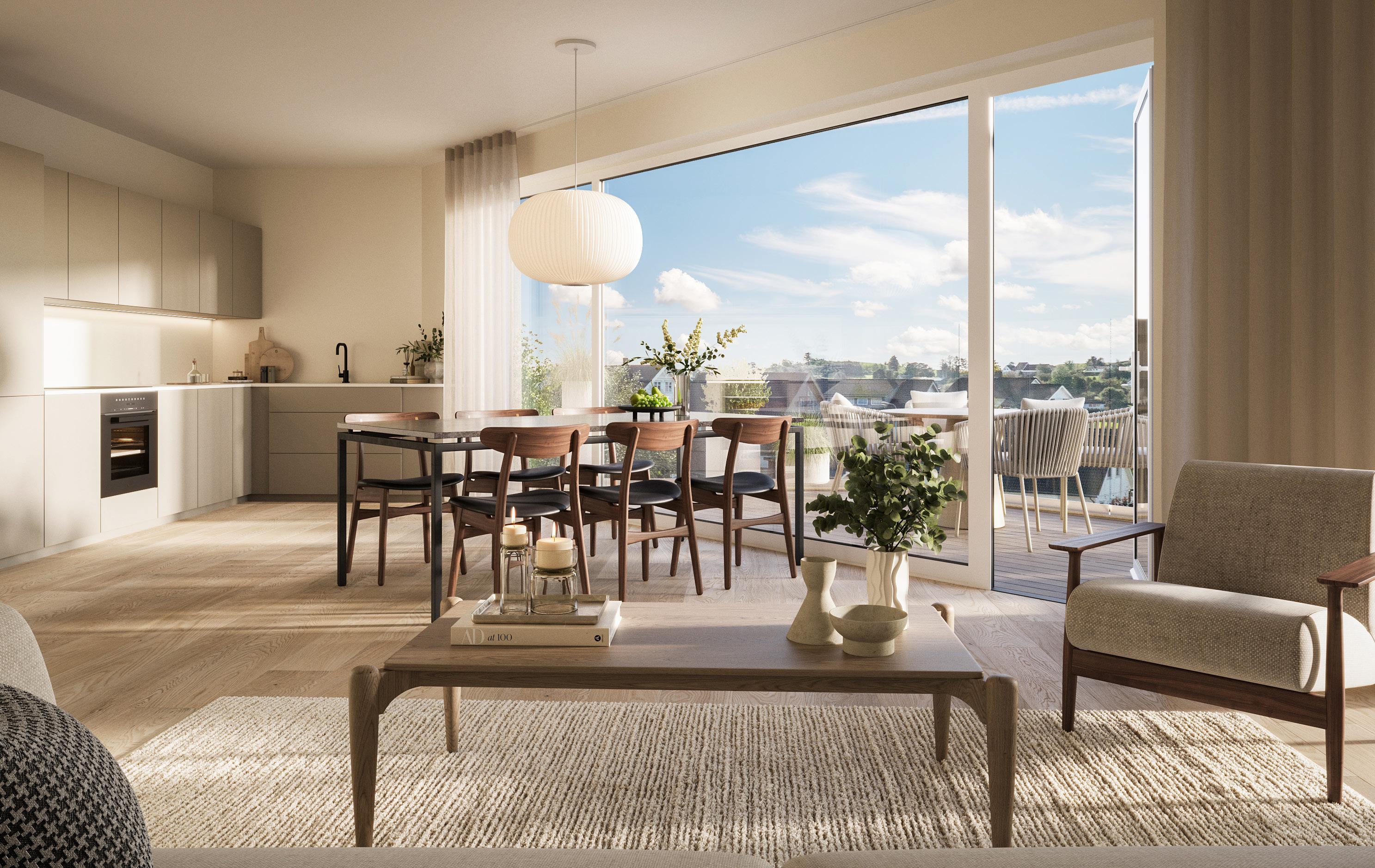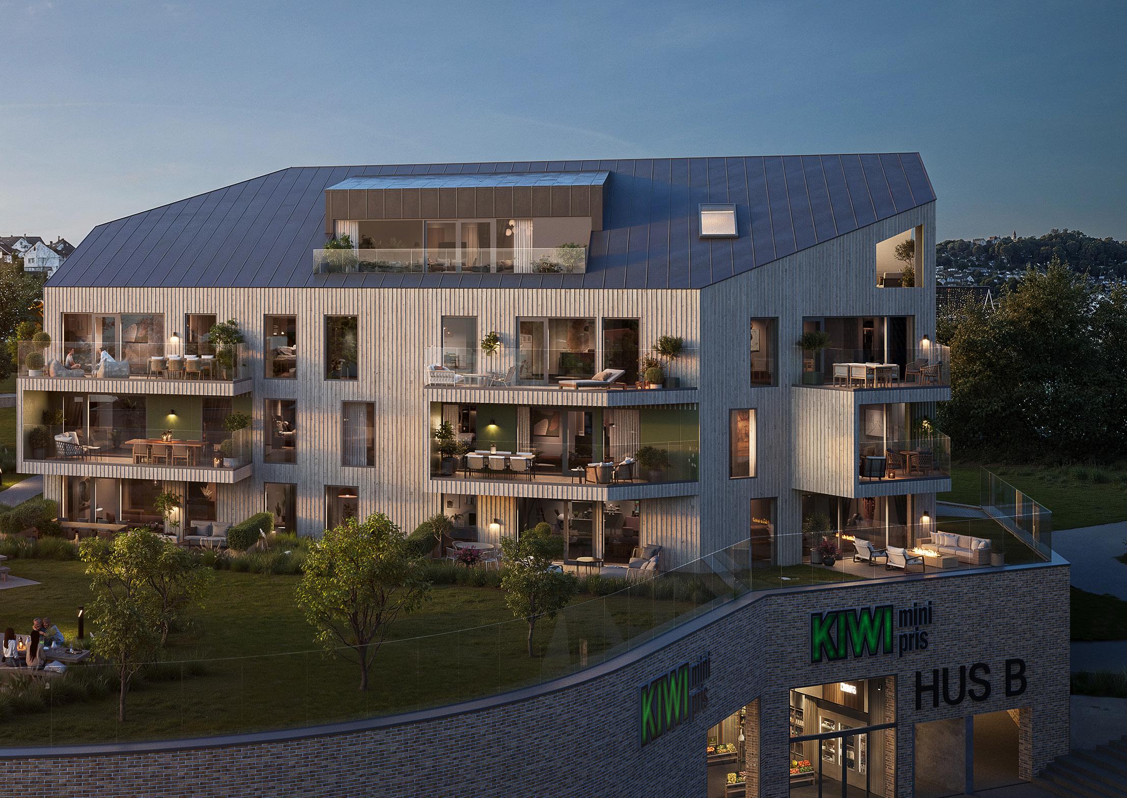 i 3. til 5. etasje gir uforstyrret utsyn. Velger du en drømmeleilighet i 2. etasje med egen markterrasse, kommer du tett på det flotte, beplantede fellesarealet.