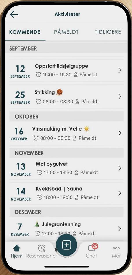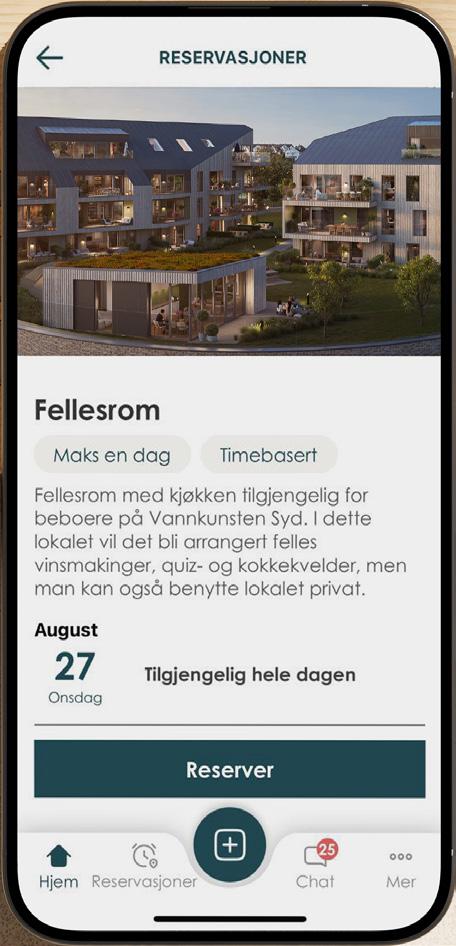 Heime-appen gjør det også enkelt å reservere fellesfasiliteter, finne tur- og aktivitetsfølger, dele tips og holde kontakten med naboene i chat.