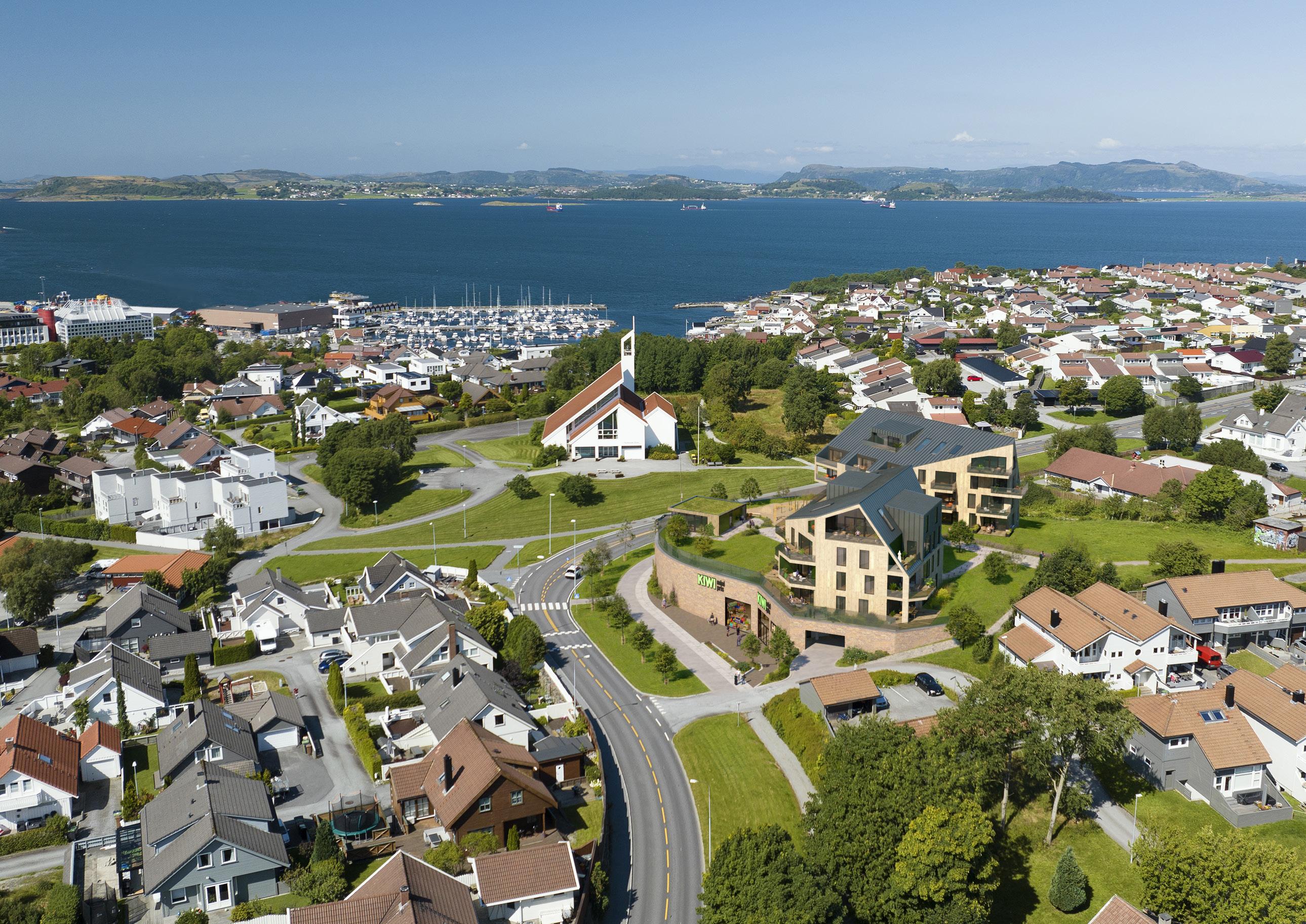 På den gamle Shell-tomten, like ved Vardeneset kirke, reiser det seg 34 moderne leiligheter med splitter ny KIWI-butikk i underetasjen. Den opphøyde beliggenheten gir deg sol fra morgen til kveld og luftig utsikt uten hindringer.