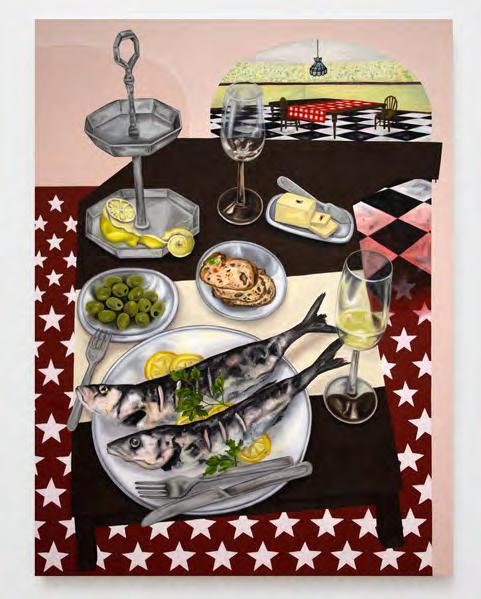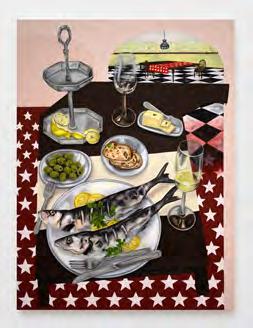 towels, trash-picked toys, and collaged grocery flyers. As a whole, the artists in Abundance/Excess use representations of fish, fruit, meat, and flowers to consider larger questions about the effects and consequences of industrial extraction and production.