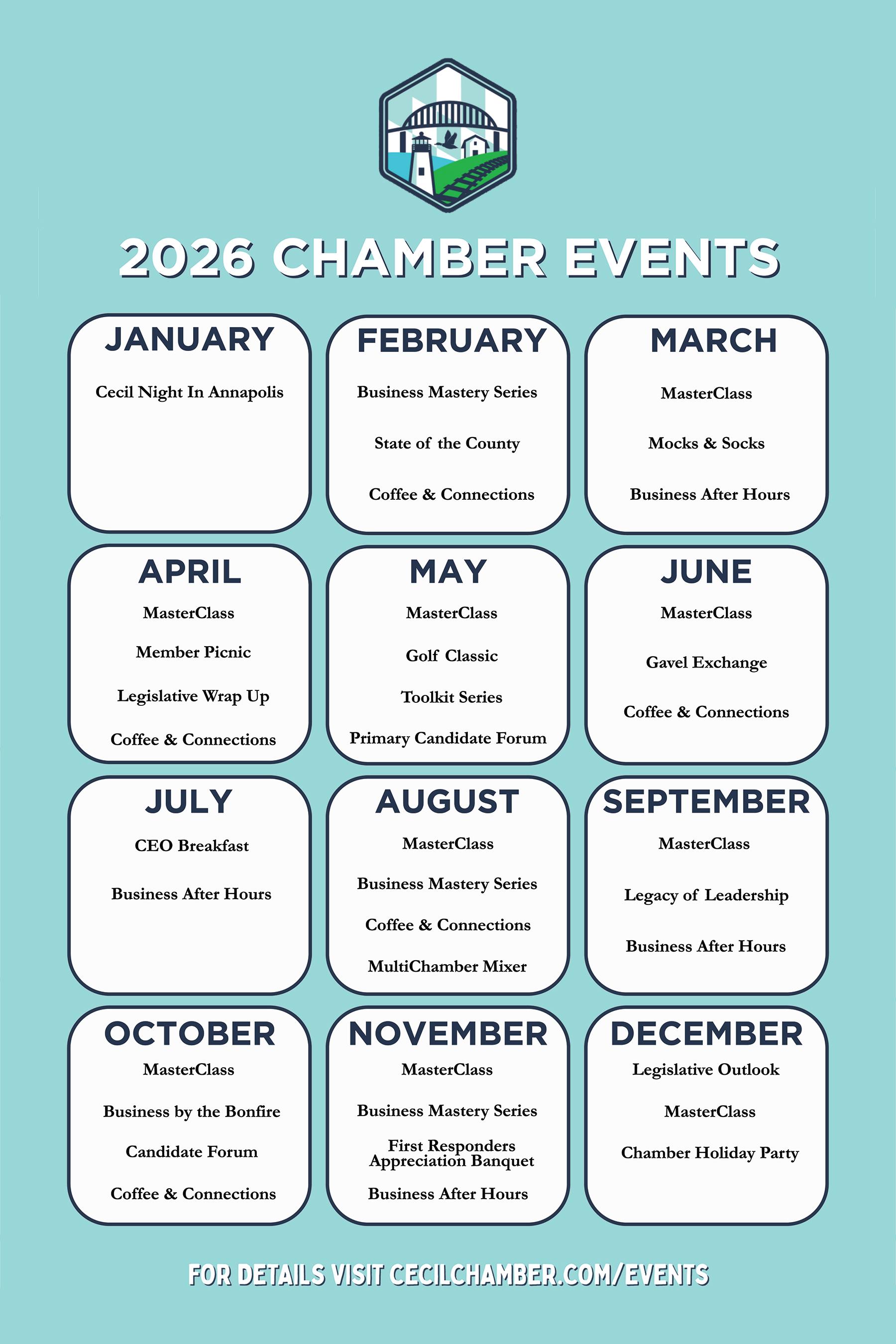 We hope that you consider joining us on this mission. To all our current members, thank you for being a part of the Cecil County Chamber of Commerce family!