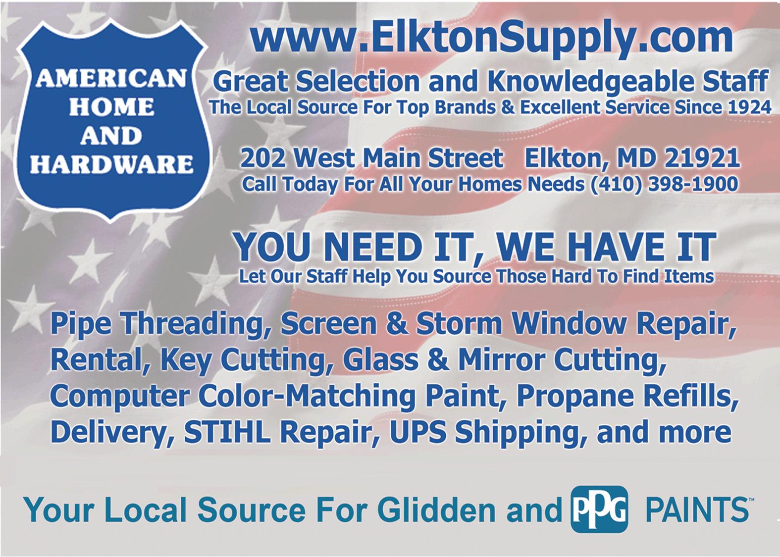 American Home and Hardware ........................ page 8 www.elktonsupply.com