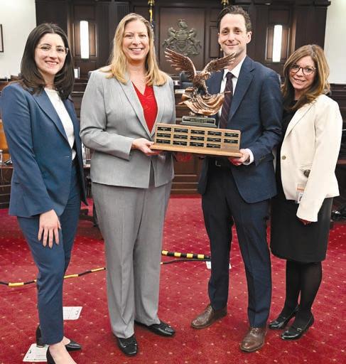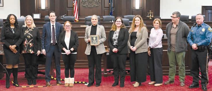 The Chester County Drug Court Team was presented with a Commendation Award for their partnership and outstanding commitment to addressing substance use disorders through a treatment-focused approach in the criminal justice system. Through the dedicated efforts of President Judge Ann Marie Wheatcraft, the District Attorney’s Office, the Public Defender’s Office, the Department of Drug and Alcohol Services, and Adult Probation and Pretrial Services, the drug court team helps non-violent offenders suffering from drug addiction. The program was founded in 1997. Since its inception,1,652 people have completed the program—a 62 percent completion rate. Approximately 95 percent of those who completed the program were employed at the time that they graduat-