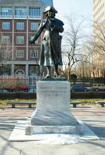 The Robert Morris statue by Bruce Anderson in Independence National Historic Park. Gunning Bedford, Jr. by Charles Willson Peale.