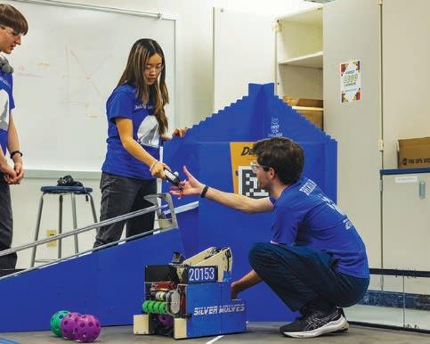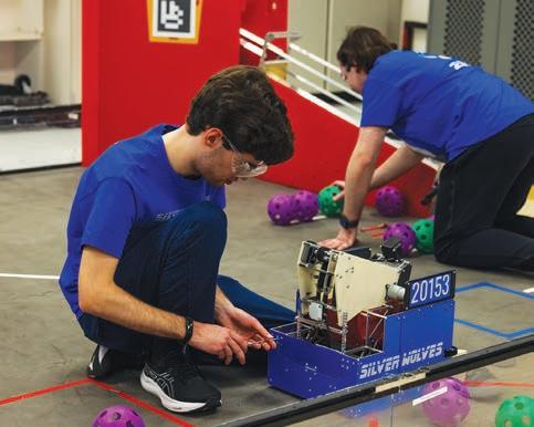The team then developed prototypes to test their theories before working together to design, code and build their robot by hand. It must operate on its own for the first thirty seconds of the match before a student driver takes the controls for the final two minutes. For the Silver Wolves, it’s not just about performing well.