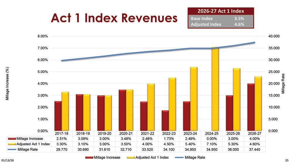 lot of unknowns related to Avon Grove’s 2026-2027 budget. Gov. Josh Shapiro recently unveiled a proposed state budget, but it will take several months for that spending plan to be finalized so that school districts have a clearer picture of their Basic Education Subsidies. Avon Grove’s investment returns will change based on federal funds rate changes.