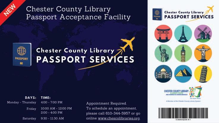The Chester County Library recently announced that community members are now able to apply for a U.S. passport directly at the library. This new service reflects the library’s ongoing commitment to providing convenient, highvalue resources for residents of Exton and the surrounding region.