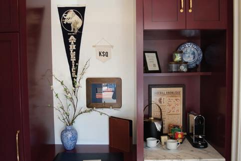 Room two, called the General, honors the Battle of the Brandywine that occurred not far from Kennett Square. Details in this room include the light fixture meant to look like buttons on an army coat and a china set room featuring Betsy Ross and Paul Revere that the couple collected before this project even began, but felt right at home in this room.