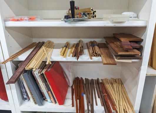 In his work, Altman limits himself to solid wood, mostly sourced from Hearne Hardwoods in Oxford (huge selection, sustainably harvested), with his favorite being Alaskan yellow cedar for its pale color, straight, sometimes-unnoticeable grain and ease of working with. His second favorite is walnut, which offers a nice color contrast to the cedar. He uses power tools to cut the wood into standard pieces, 3.1 to 3.3 millimeters thick (the width of his jigsaw blade) and 11.8 millimeters wide (it just feels right).
