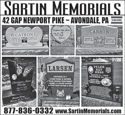 The Chester County Press publishes obituaries free of charge for funeral homes with active advertising accounts only. Others with a connection to southern Chester County are charged a modest fee. Obituaries appear on the Wednesday after they are received with a Monday 5pm deadline. They are also posted on www.chestercounty.com. Photos should be sent as .jpeg attachments to the obituary text. To submit an obituary to the Chester County Press or for a rate quote, email the information to editor@chestercounty.com.