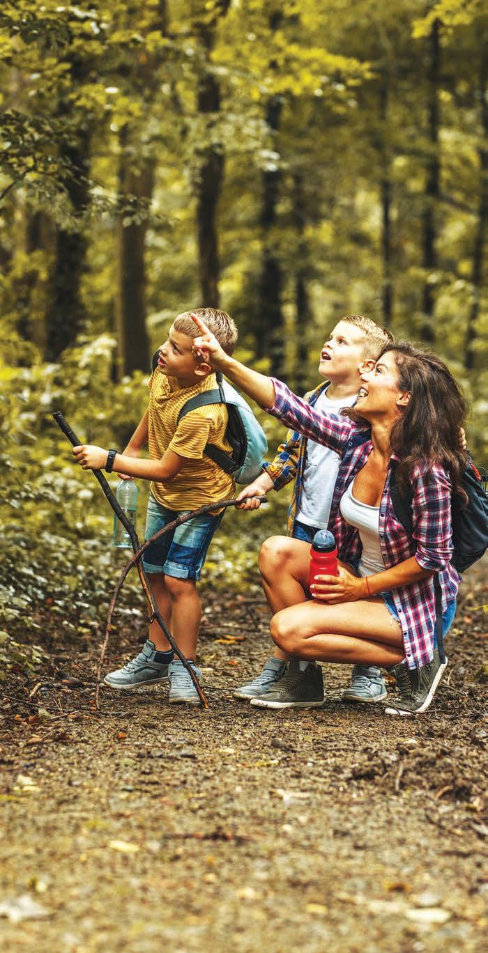 water, mosquito repellent, sunscreen, hats, proper shoes for everyone, and you’ll want to pack a lunch and snacks. Be sure to take along a charged cellphone (a power bank is a good idea), as well as downloading online maps for the areas you’ll be visiting, in case you lose cellular signal and are unable to access that info from the trail.