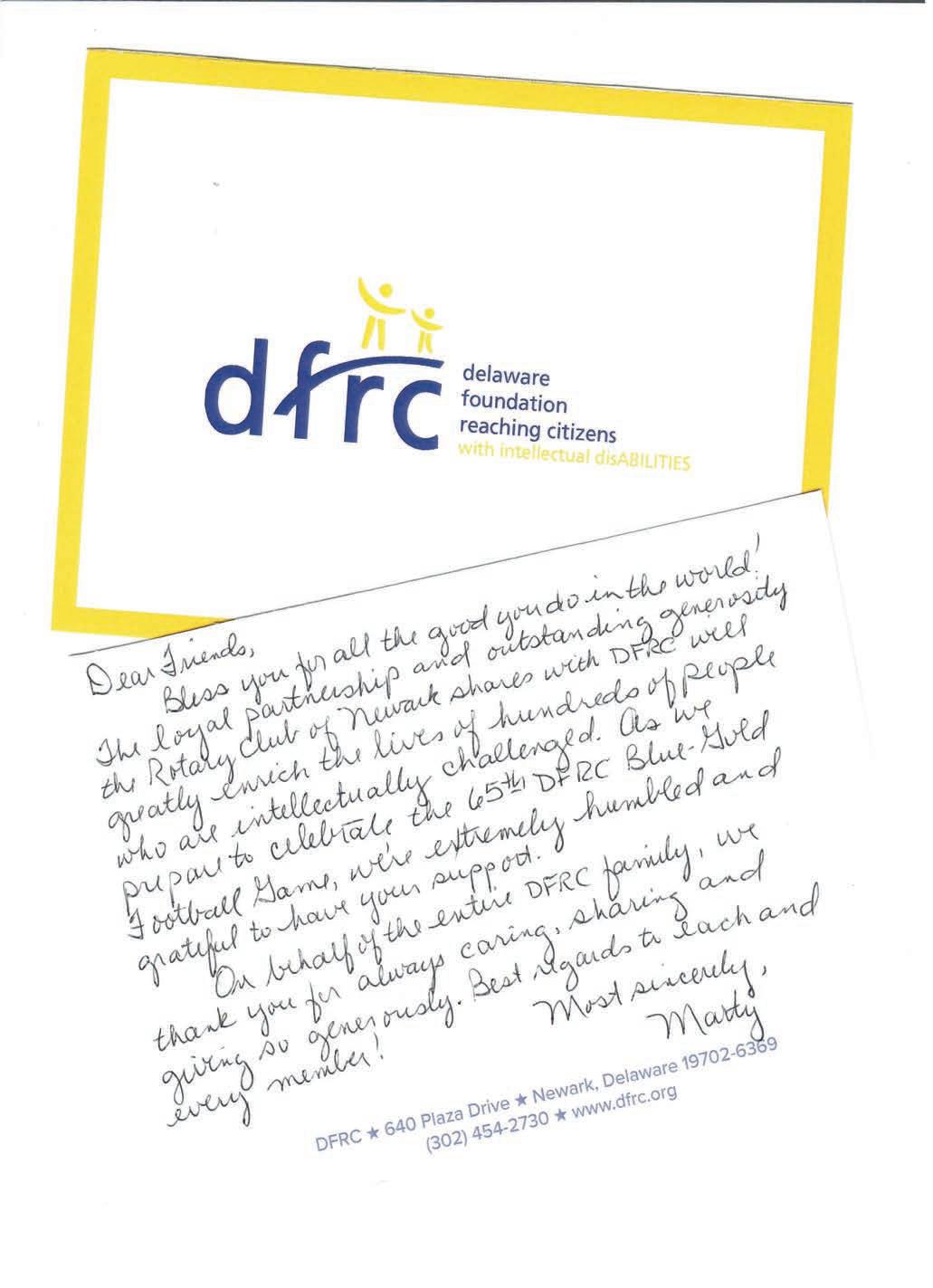 A donation of $395 was made to the DF RC by placing an ad in the 2021 program book. The annual Blue/Gold game will return to Newark in June.