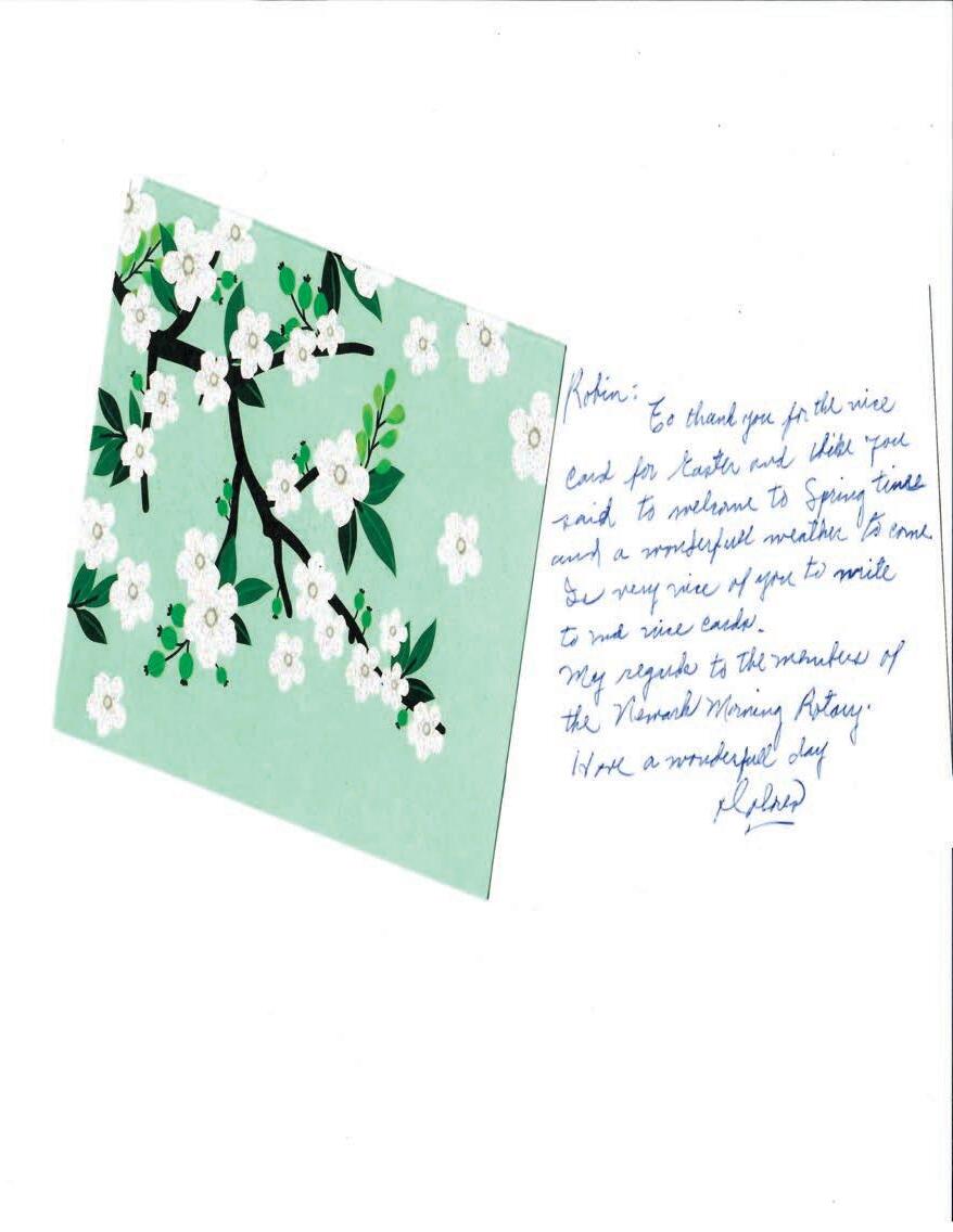 To support our faithful servers and cooks at the Courtyard Newark who had to be let go due to the pandemic, the club contributed $1,000 to help with personal expenses.