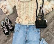 The gift shop sells unwashed fleece, natural yarn and roving (the stage between the two).