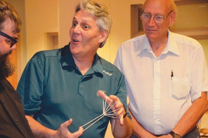 Denburg and club Vice President Rob Francis used a classic rope trick called the Professor’s Nightmare to talk about elements and techniques.