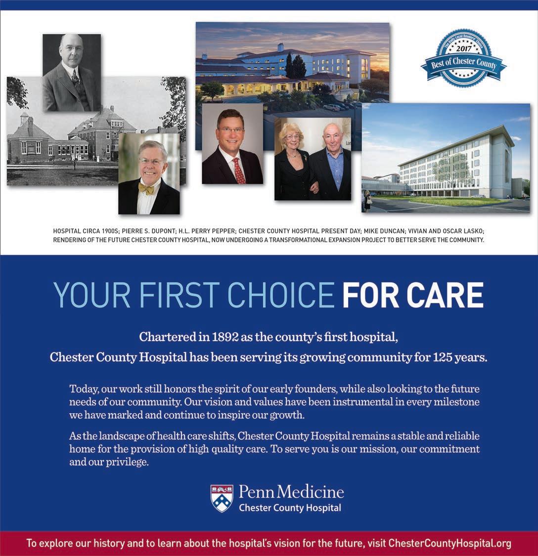 The hospitals work closely together, and already that collaboration has enabled providers, leadership and staff to leverage best practices across the health system. Chester County residents bene t from the collaboration between hospitals as well as from access to a broader range of services.