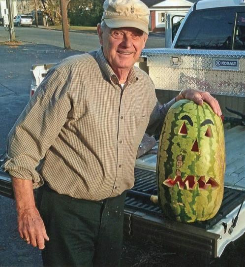 Bill Taylor loves growing vegetables in his garden so much that he carved a jack-o-lantern out of a watermelon and put a candle in it.