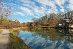 the Bloomfield property, which included a mill operated by the Chambers family dating back to 1794. Several trails wind through the park, and you can see trees that are centuries old as you enjoy a peaceful walk through the woods. The park has ponds stocked for fishing, volleyball, tennis courts and a children’s playground as well as Frisbee golf and a pavilion on which summer concerts are presented.