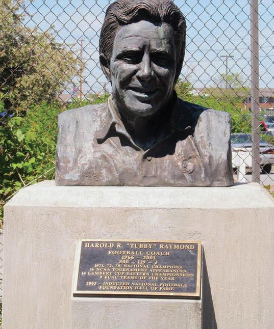A plaque honoring legendary University of Delaware football coach Tubby Raymond welcomes visitors to Delaware Stadium.
