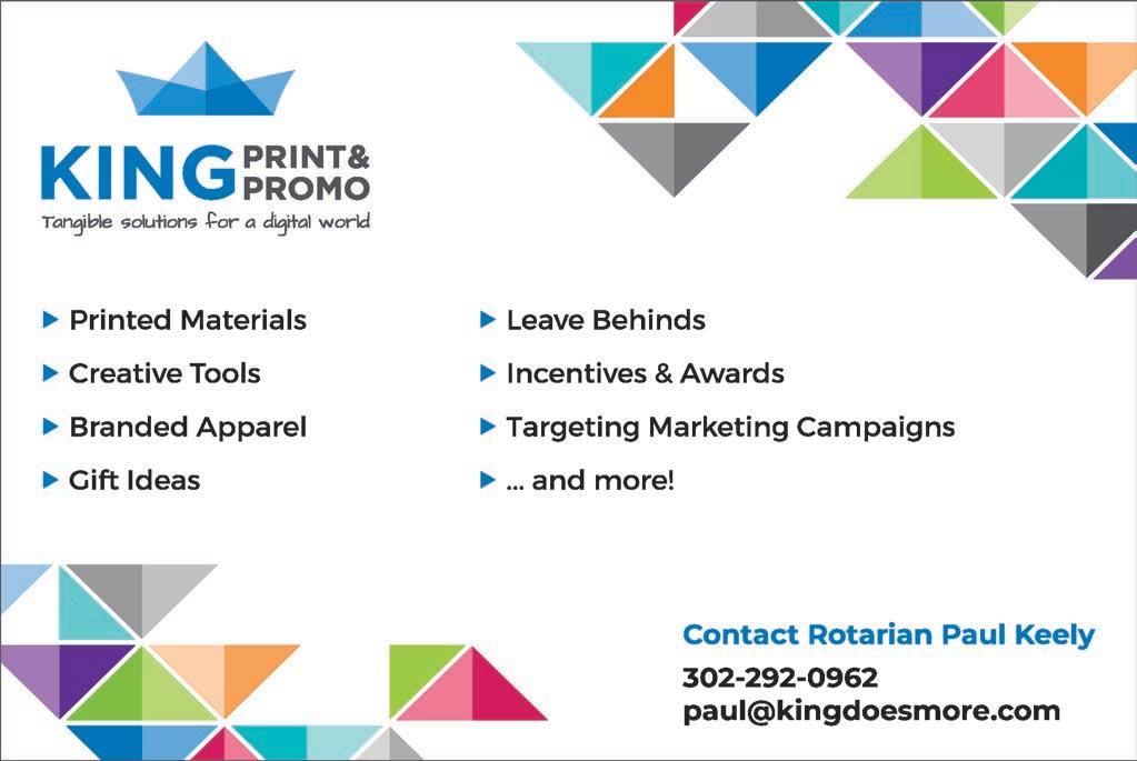 Paul owns King Print & Promo, providing tangible marketing and communications tools to businesses. He is married to his high school sweetheart Eileen, has four children and three grandchildren. As a past president of this club, Paul is constantly inspired by the great work and big hearts of his fellow Rotarians.