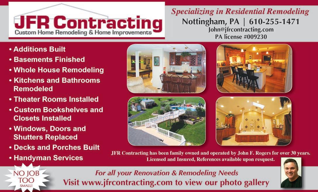 Top-quality hardscaping features, including paver patios and walkways, add distinction and value to your property. Whether you are a looking to enhance a residential or commercial property, hardscaping is worth the investment. Gray tones continue to dominate current hardscape trends, however, an upand-coming trend is starting to lean back toward warmer tones. Chad Howell Howell’s Lawn and Landscape 1096 Lees Bridge Rd Nottingham, PA 19362 610-842-1683