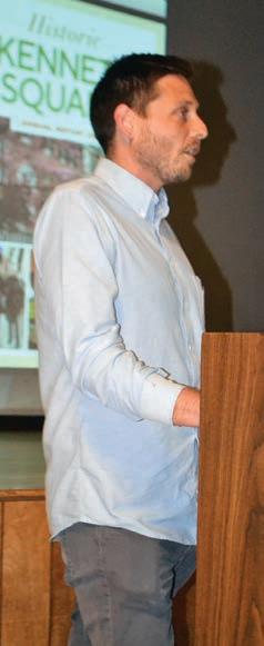 The event, which was held at the American Legion Hall on Broad Street, also featured a presentation by Historic Kennett Square Vice President Tom Sausen, who gave the audience a current snapshot and forecast for the immediate future. He called 2107 a good year for economic development in the borough and township, with almost $8.4 million in spending on commercial property and new business investment – a trend that has continued to rise over the past few years, he said. He said that three new businesses in the downtown district opened last year, as well as a new owner at the new Square Pear Fine Art Gallery; and the relocation of Salt & Stone and Chantilly Blue.
