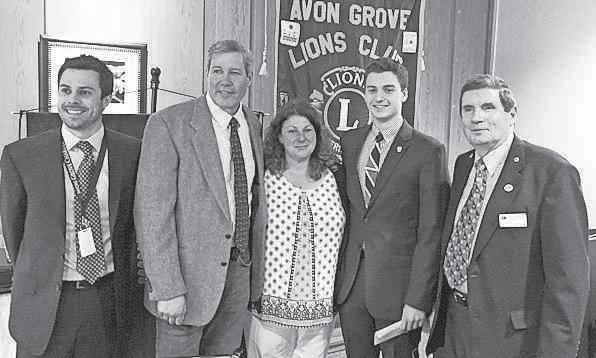 This year’s recipient of the “Student of the Year Award,” presented by the Avon Grove Lions Club, is Avon Grove Charter School senior Daniel Zunino. He is accompanied by Mr. and Mrs. Zunino, with president David Priebe and principal Bryan Brutto. Daniel is an outstanding student leader within the AGCS community. He is president of the Student Council, captain of the Academic Competition Team, volunteers in the local community, and is enrolled in an academically rigorous schedule. He was chosen for exemplifying Avon Grove Charter School’s principles of leadership and service.