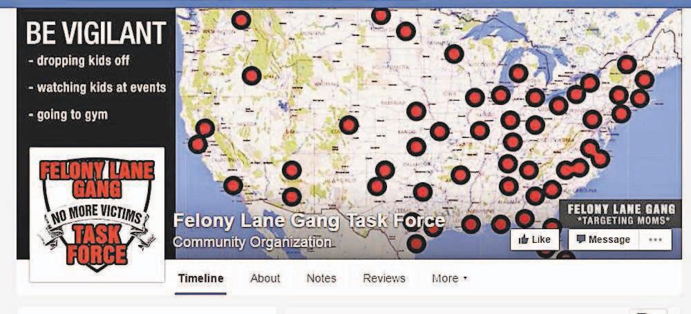 Nationally, the Felony Lane Gang Task Force’s Facebook page has more than 6,000 followers, and serves as a hotline to report crimes, a forum to share ideas, and it posts surveillance camera shots of potential thieves.