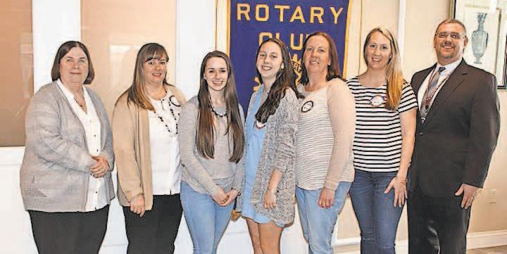 Oxford Area High School students Amanda Hicks and Erin Oechsle were honored as Oxford Rotary Club Seniors of the Month for March. Pictured from left are Oxford Rotary Club President Marilyn Knaub, M.D., Linda and Amanda Hicks, Erin and Michelle Oechsle and Erin’s sister Paige, and principal Christopher Dormer.
