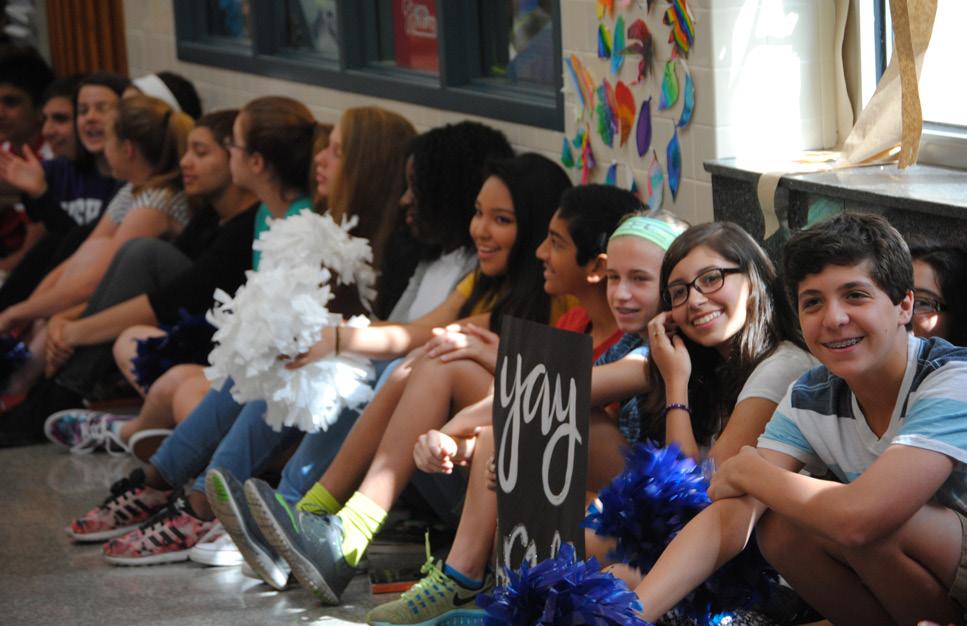 middle school students lined up to cheer the members of the Class of 2016 as they did the “senior stroll.”