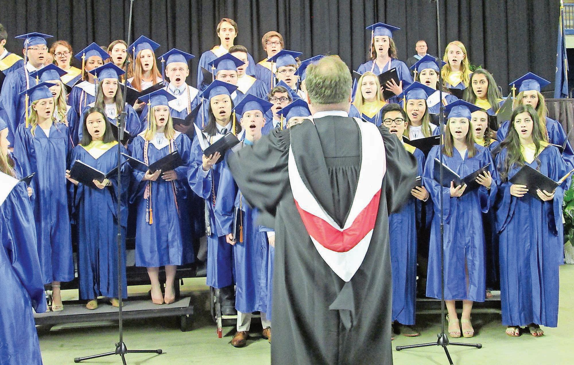 The UHS Chorale, led by Jason Throne, sings ‘The Star Spangled Banner.’