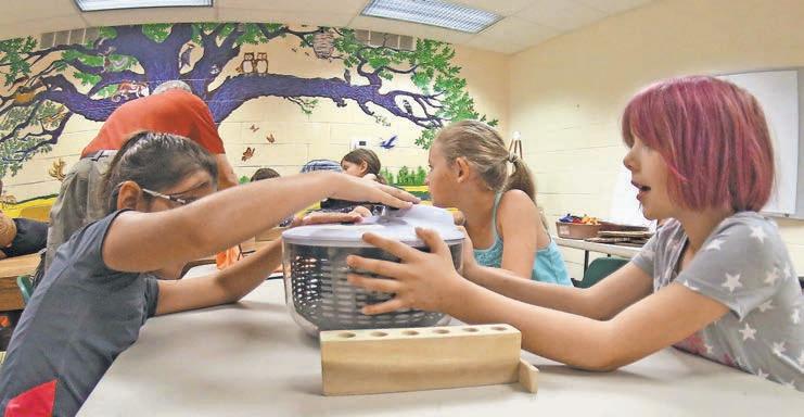 stand the components of the blood, Turner gave out salad spinners rigged with styrofoam to hold test tubes full of fake blood. The kids took turns spinning the devices to simulate a centrifuge. When the liquid in the tubes was held up for view, the students saw how the medical profession analyzes the components that have