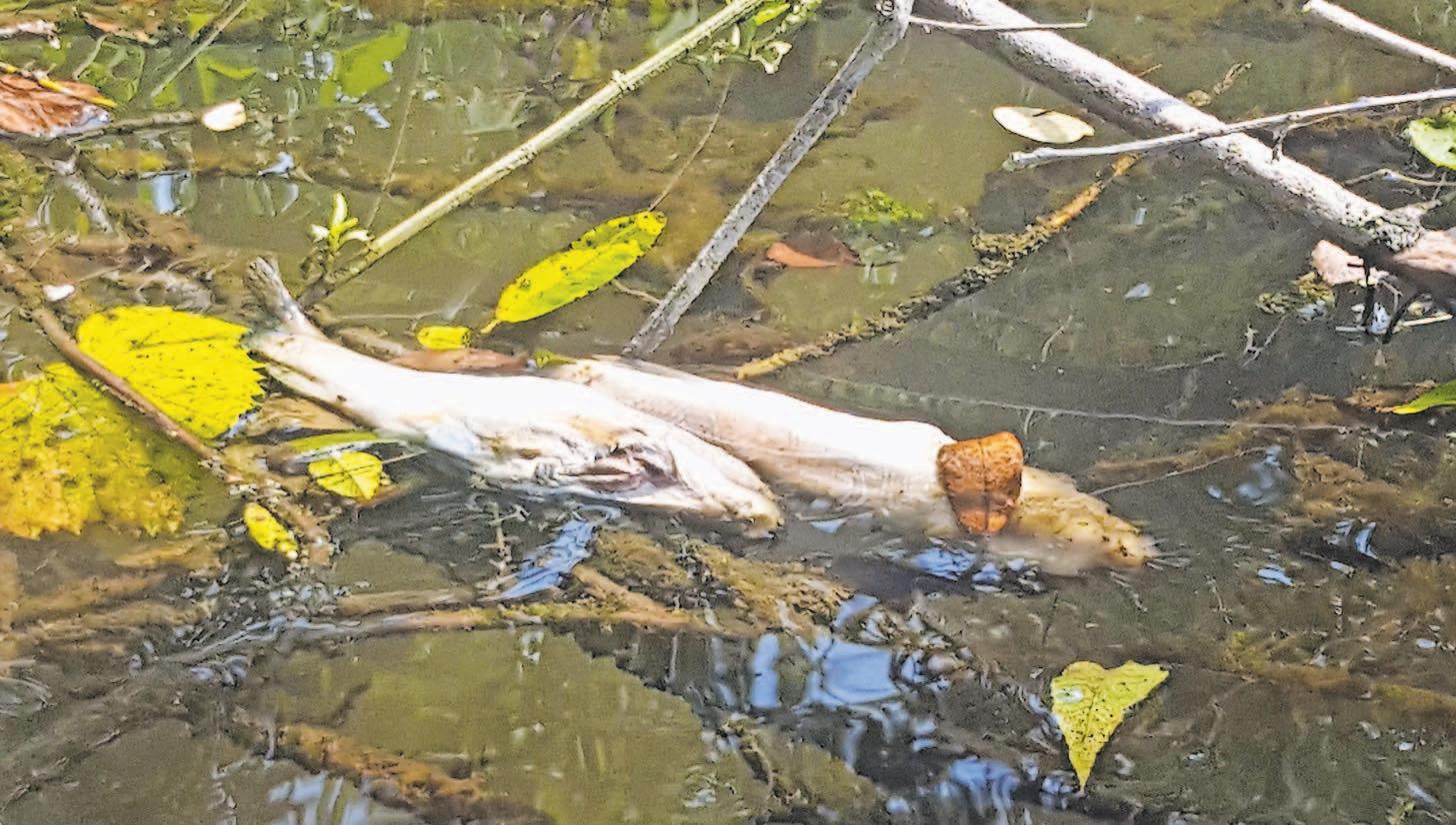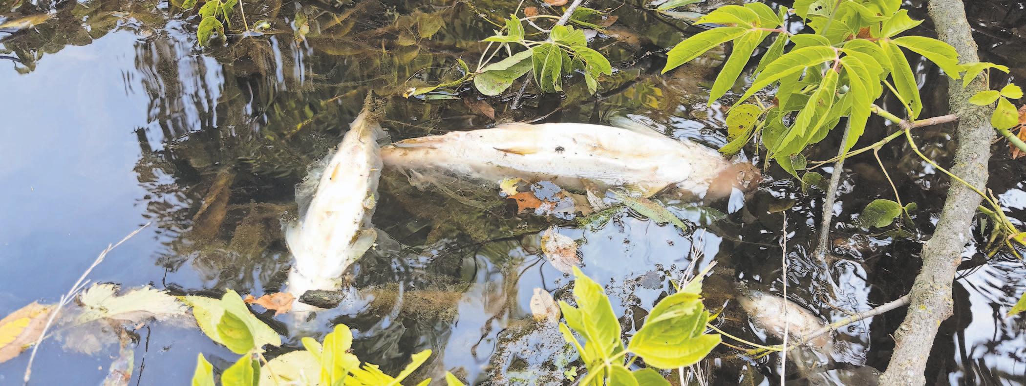 camera, in order to capture fish swimming beneath the creek’s surface. When they arrived at the water’s edge, what they saw was nearly unimaginable. Hundreds of dead fish lay floating in the water nearly as far as they could see, as well as other specimens of aquatic life: crayfish, big mouth bass, red-eye bass, mudsuckers, sunnies, trout and eels. The two then began hiking along the creek toward Avondale, and all along their nearly one-mile journey, the devastation followed them.