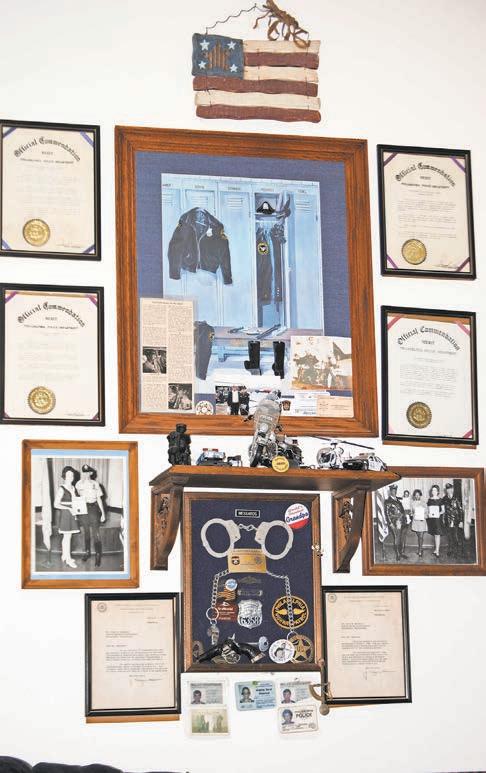 A few of the commendations that Dave Messaros received during his career in law enforcement are featured prominently in this display in the family’s home in the Oxford area.