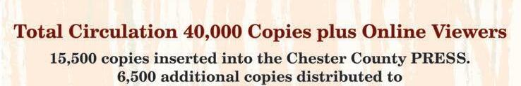 To submit items to the Calendar of Events, e-mail jchambless@chestercounty. com. There is no charge. Not every submission can be included. Items should be submitted at least two weeks before the event.