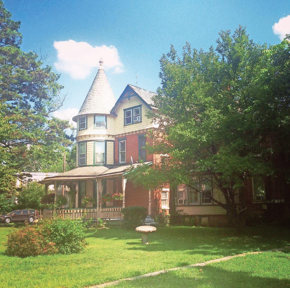 Site No. 33. The Chalfant Mansion, 220 N. Union Street. A fine example of Queen Anne architecture attributed to the firm of Frank Furness, the ornate north aspect date stone is inscribed WSC 1884. Note the elaborate corbeled brickwork on the three chimneys restored in 1987.