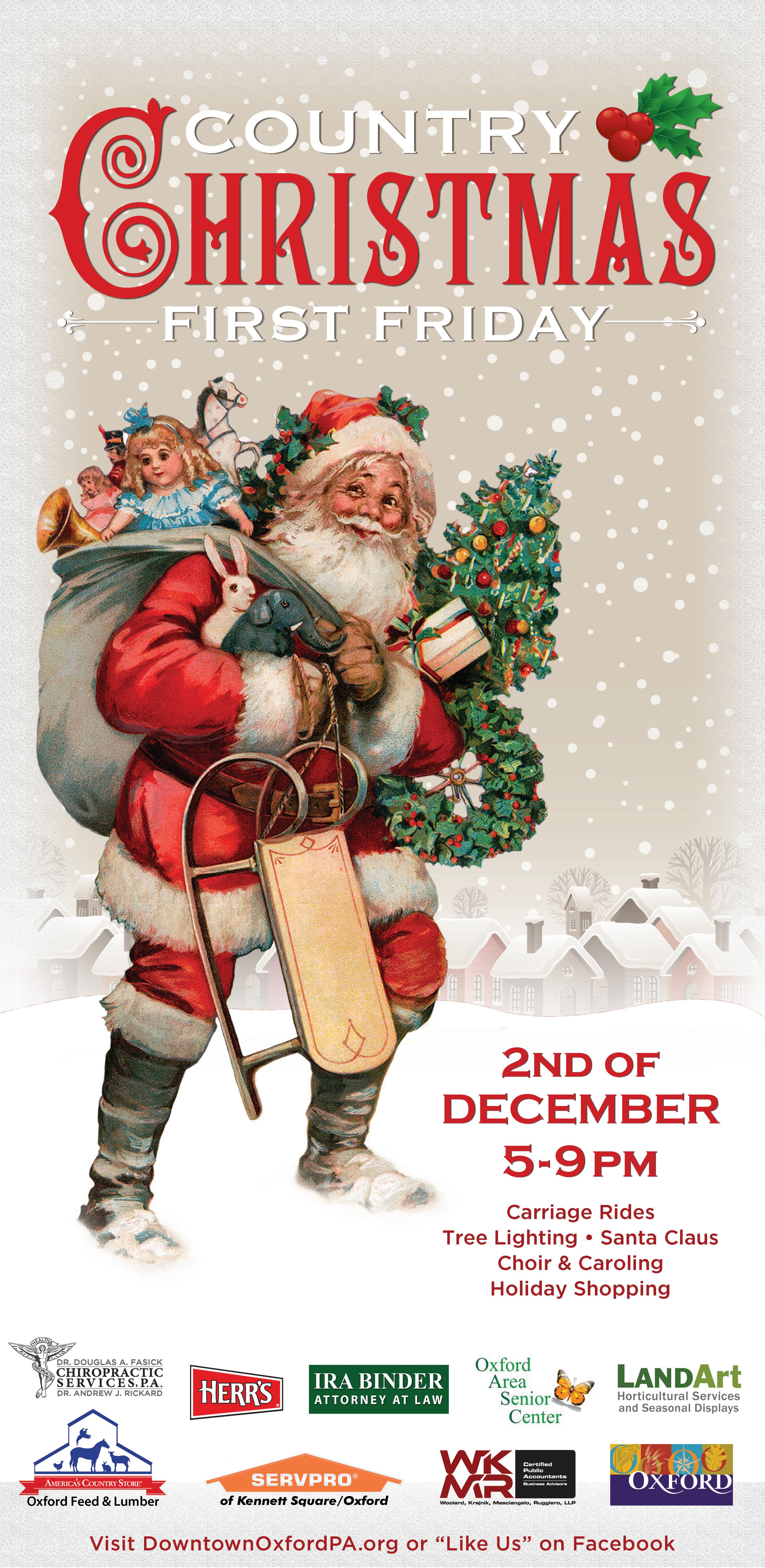 This event is designed to bring residents and their families to downtown to join in fellowship, shop and celebrate the charm of an Oxford Country Christmas. The borough will be brought to light at 6:30 p.m. with the traditional community sing-along and tree lighting on the lawn of Edward Jones Investments, affectionately called “The Green.” Throughout the evening, horse-drawn carriage rides and trackless train rides will be offered,