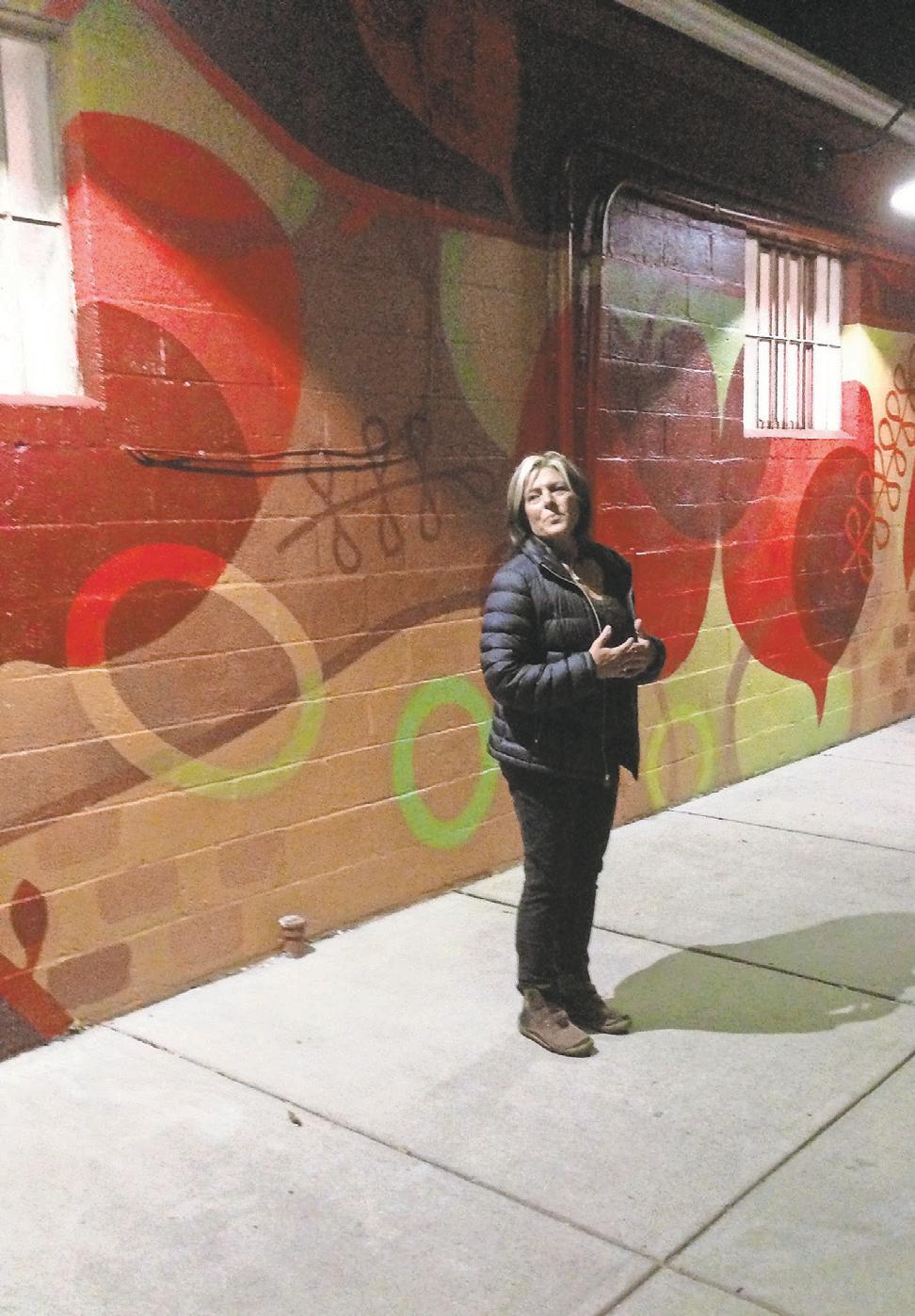 Melrath, the owner of an art studio on Third Street, completed the project on Oct. 6. The mural is taken from a 2014 painting by Melrath that incorporates sinuous vines and leaf shapes. She came back to Oxford after living in the Seattle area for two decades. Public art is a vital part of downtown life in Seattle, and a group of art aficionados in Oxford want to add more public art in the town. Oxford Mainstreet, Inc. and the Oxford Area Foundation are two of the organizations that have been supportive of the efforts so far. Oxford Mainstreet, Inc. is also collecting contact information from local artists whose works might lend themselves to public display. A mosaic on Third Street by artist Vicki Vinton is slated for installation in the spring of 2017. More information, including a link to support the public art initiative, is available on the website at www.downtownoxfordpa.org.