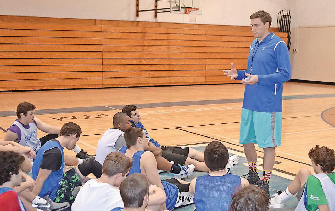 Kennett’s new varsity basketball coach, Brian Grashof, spoke to his team before a recent practice.