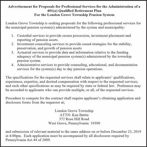 The Kennett Township Board of Supervisors gave preliminary approval to the township’s 2020 budget at their Dec. 4 meeting, one that will work with a $5.86 million general fund budget and leave a surplus balance of just under $150,000.