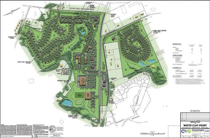 In advance of its Dec. 16 presentation to the New Garden Township Board of Supervisors and an expected overflow audience of township residents who will be arriving with questions and concerns, J.P. Morgan Chase recently submitted a visual overview of its proposed White Clay Point development, which if approved, will occupy nearly 200 acres along Route 41. The proposed design will feature a footprint that will include both residential and commercial
