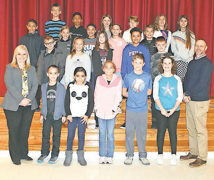 Elementary School teachers nominate Students of the Month based on the students’ academic achievements and participation in class and school activities. Pictured with principal Dr. Nicole Addis and assistant principal Jason Soule, are fifth grade Students of the Month (front row from left), Ilvin Carabello, Camilla Sanchez-Alba, Adrianne Quinones, Chase Verbanas and Kaylee Teagle; (sec-