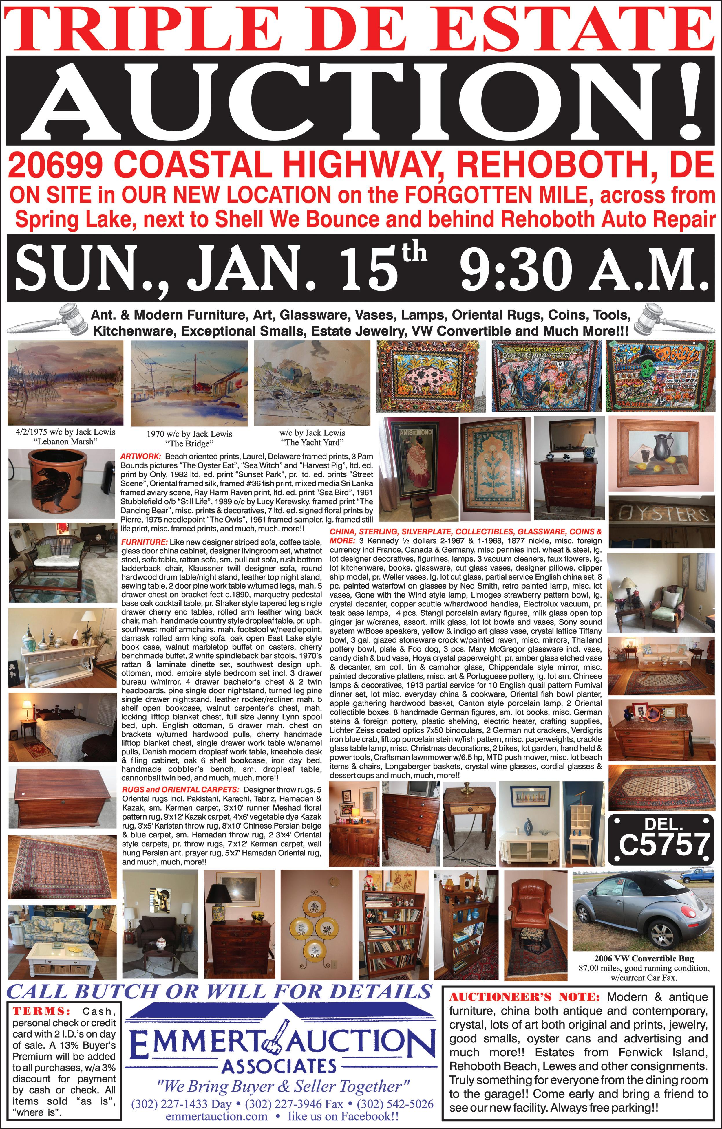 Janurary 18, 2017 @9:00 am. Chew’s Towing, Inc. 722 Market Street, Oxford, PA 19363