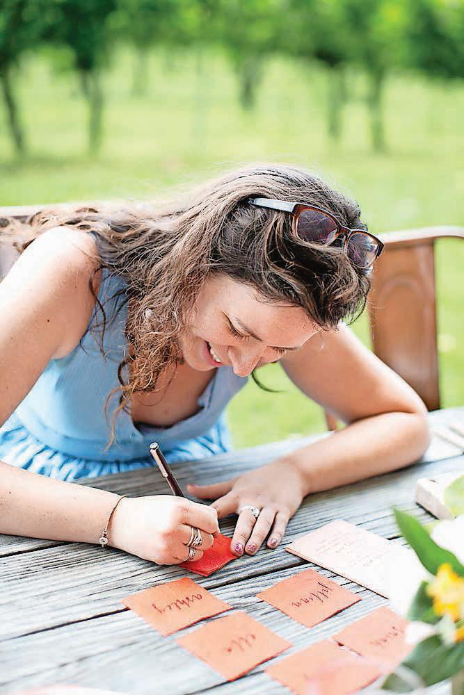 While at Styers, she first dipped her ink pen into calligraphy, using a paintbrush and canvas to develop a roadside sign promoting an upcoming wedding. Using the wedding invitation as a guide, Langer copied the fonts, letter by letter. She read books about calligraphy, and watched online tutorials. Slowly, what had once been just another part of her expanding capacity at Terrain was becoming a true skill.