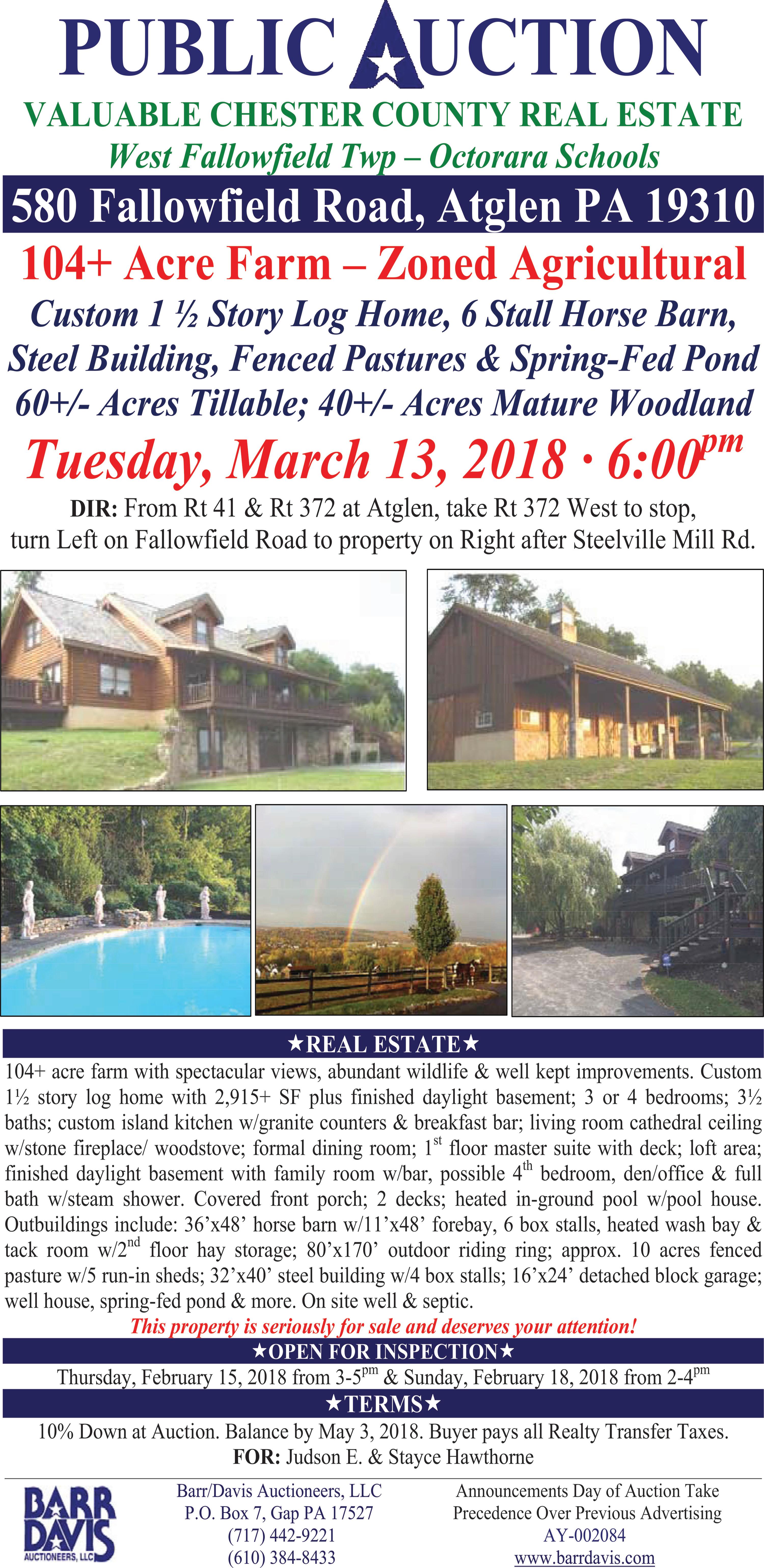 tion. Accordingly, Applicant is seeking a variance to utilize a 4% deduction for proposed road-right-of-way rather than a 10 % deduction when calculating the net tract area applicable to the Development. F) A variance from Section 27-603.6. L to permit a maximum building height of 42 feet rather than the permitted 35 feet or 3 stories. G). A variance from section 27-603.6. N to permit the proposed Eco-Village Internal Accessways to be constructed of asphalt or other paved material rather than reinforced pervious or vegetated surfaces and to permit permanent parking in designated areas along the proposed Eco-village Internal Accessways. H). Such other relief as is necessary for the Development as proposed. This property is in the Rural/ Residential (RR) District. William Grandizio, Chairman, Zoning Hearing Board