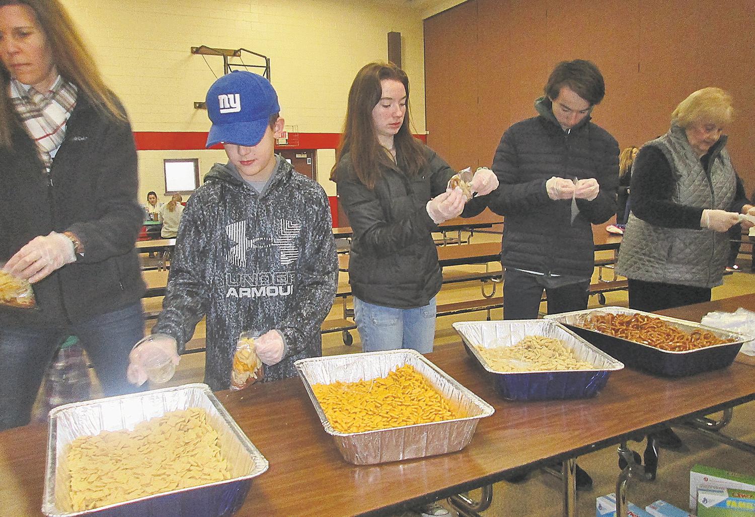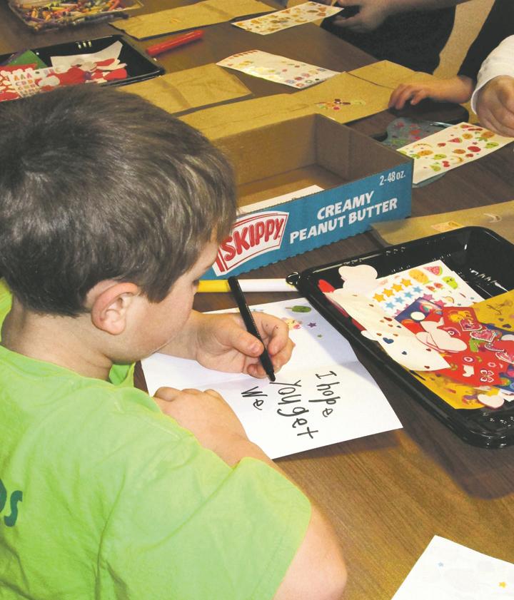 Families fill Unionville-Chadds Ford schools with the spirit of giving days of the year. Instead of sleeping late, students at Unionville High School signed up to work at one of several activities on Monday morning. As 9 a.m. approached at Hillendale Elementary School, several high-school students arrived in the chilly cafeteria to help prepart peanut butter and jelly sandwiches, fill snack bags, make chocolate chip cookies, and help children decorate lunch bags and make place mats. The lunches went to Safe Harbor, along with handmade cards made by children that