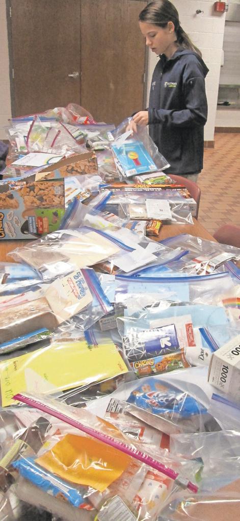 been collecting items to help residents of the Domestic Violence Center of Chester County, as well as Family Promise of Southern Chester County. On Monday, volunteers of all ages, along with princi-