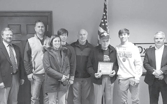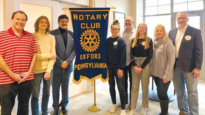 The Oxford Rotary Club recently honored three Oxford Area High School students as its Seniors of the Month for November and December. Cameo Powell was honored as one of the club’s two Seniors of the Month for November and Joshua Arnold and Leah Humphrey were honored as Seniors of the Month for December. Pictured from left are Gary and Joshua Arnold; Oxford Rotary Club President Dr. Ray Fischer; Cameo and Larry Powell; and Leah, Denise and Tim Humphrey.