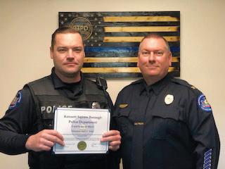 Christopher Gravina (top left photo) was promoted to the position of corporal and Kennett Square Police Chief William Holdsworth handed out Certificates of Merit and awards to Gravina, Officer Mark Todd, Officer Jacob Andress, Corporal Kenneth Rongaus, and Officer Francis Toth.